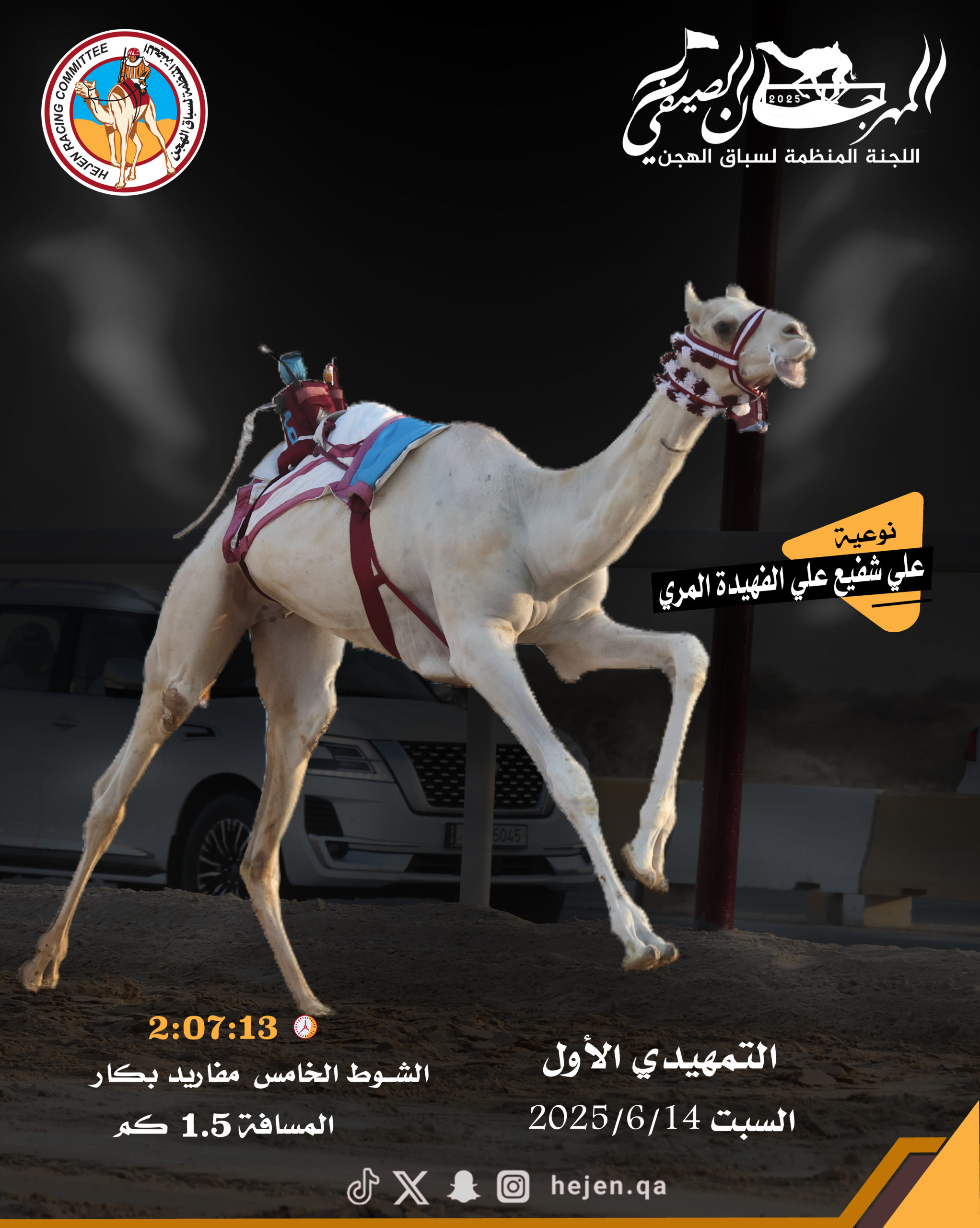 . في ثاني أمسيات مهرجان المؤسس . هجن العاصفة تسجل حضورها المميز وتظفر بأقوى نواميس البكار . وهجن زعبيل تتألق وتفرض سيطرتها على ناموس القعدان مفتوح . لبرقه- الشحانية منافسات قوية شهدتها تحديات الفترة المسائية، لثاني أيام مهرجان المؤسس الشيخ جاسم بن محمد بن ثاني، طيب الله ثراه، لسباق الهجن العربية الأصيلة، والتي خصصت لتحديات اللقايا المفتوحة، وجرت من مسافة 5 كيلومترات. ودخلت معترك ومنازلات اللقايا المفتوحة عدة شعارات خليجية معروفة بمستواها القوي والمميز، في مقدمتها هجن الشحانية وهجن الرئاسة وهجن أم الزبار وهجن العاصفة، وهجن زعبيل وبعض الشعارات الأخرى، المملوكة لأصحاب السمو والسعادة الشيوخ، من مختلف دول مجلس التعاون الخليجي. وتمكنت هجن العاصفة، من تسجيل حضورها القوي في المهرجان السنوي الكبير، بفوزها بناموس الشوط الأول الرئيسي المخصص للقايا بكار مفتوح، عن طريق "تواقة" التي قادها المضمر القدير غياث الهلالي من اعتلاء صدارة أقوى أشواط البكار بتوقيت زمني قدره 7.27.62 دقيقة هو الأفضل في منافسات الأمسية، لتحتل "مخايل" ملك هجن الشحانية، بقيادة جابر بن سالم فاران المركز الثاني بتوقيت قدره 7.28.73 دقيقة، فيما جاءت "طلايع" لأم الزبار على المركز الثالث بتوقيت قدره 7.32.24 دقيقة. . . . ناموس القعدان كما تمكنت هجن زعبيل من اقتناص ناموس الشوط االثاني الرئيسي المخصص للقايا قعدان مفتوح، عن طريق "الدنقلاوي" الذي قاده المضمر...