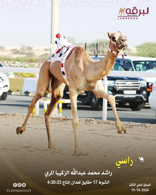 وتألق «راسي» ملك راشد محمد عبدالله الزكيبا المري في الشوط الرئيسي المخصص للحقايق قعدان إنتاج، وقدم «راسي» أداء مميزاً في أقوى أشواط القعدان إنتاج، حاسماً الفوز بناموسه المفضل للمرة الثالثة على التوالي، بعد أن حقق الفوز بنفس الشوط في المحلي الأول والمحلي الثاني، ليحقق الثلاثية اليوم ويكون أقوى المرشحين للألقاب القوية لهذا الشوط في الموسم الحالي..