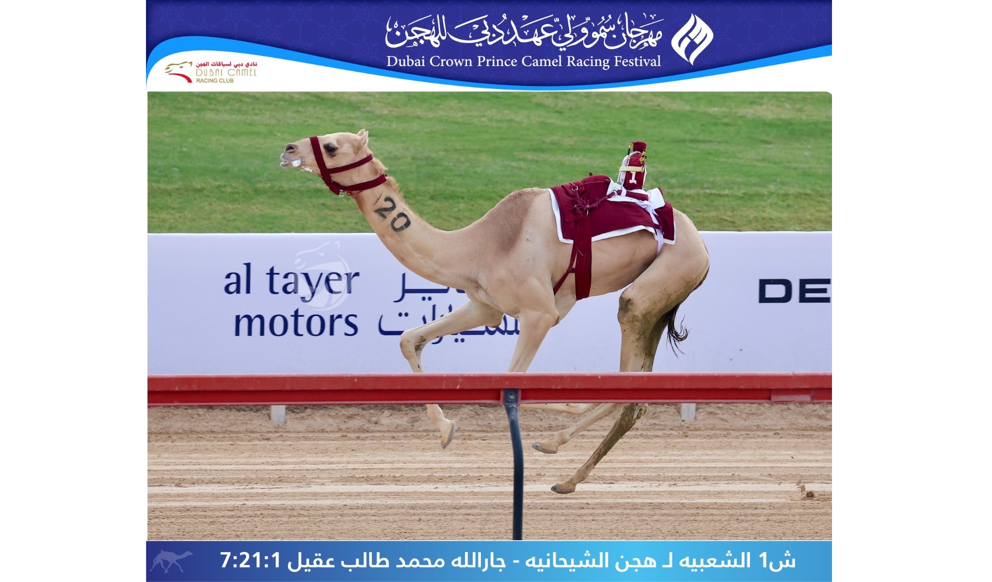 واصلت هجن الشعار الأدعم تألقها الكبير بمهرجان ولي عهد دبي لسباق الهجن العربية الأصيلة، فبعد السيطرة شبه التامة على أشواط اللقايا الصباحية، في افتتاح المهرجان السنوي الكبير، صباح اليوم الأحد 19 يناير 2025، عادت هجن الشعار الأدعم للتألق من جديد خلال تحديات الفترة المسائية بالسيطرة على ناموسي الشوطين الرئيسيين، وكذلك الفوز بعدة نقاط أخرى بخلاف الشوطين الرئيسيين القويين.