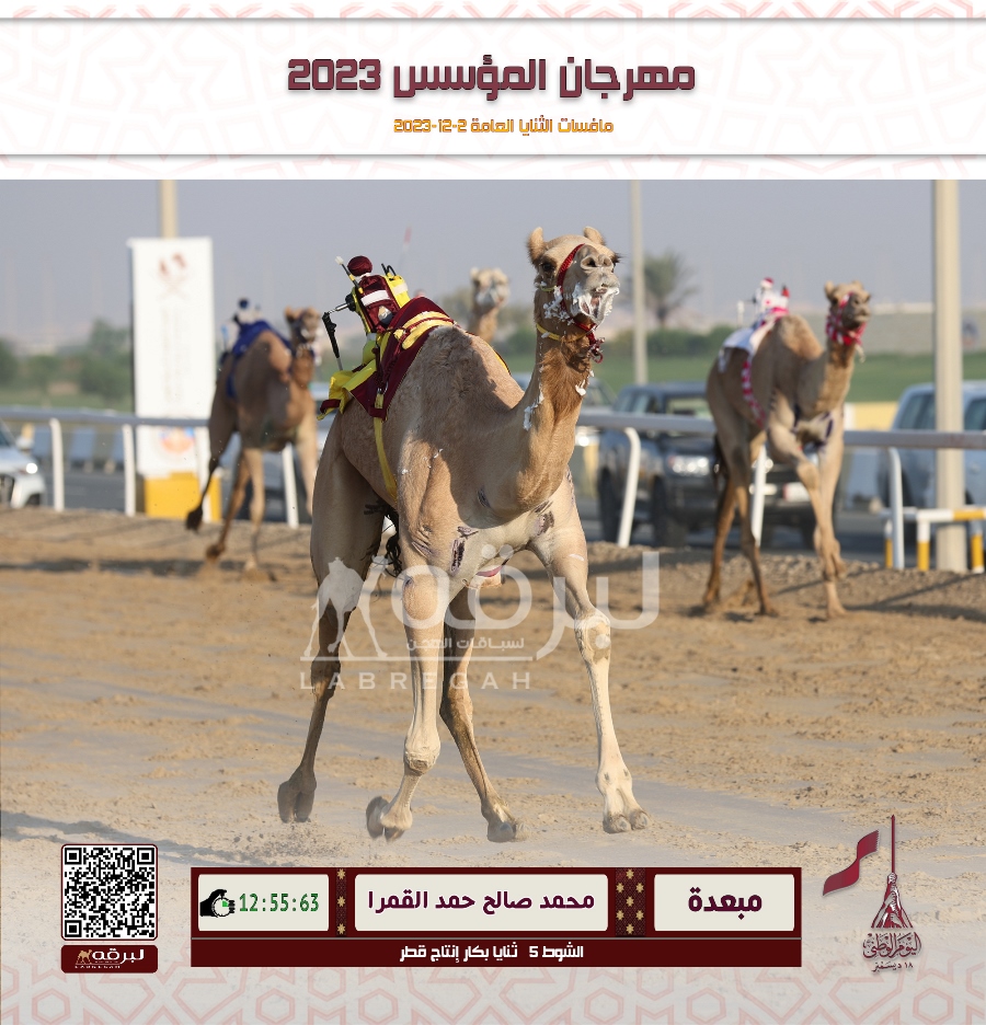 وفازت «مبعدة» ملك محمد صالح حمد القمرا النابت، بصدارة الشوط الخامس المخصص كرئيسي للثنايا بكار إنتاج دولة قطر، بعد أداء قوي قدمته «مبعدة» التي نجحت في إبعاد كل منافسيها عن الصدارة لتنهي الشوط القوي في الصدارة بجدارة محققة الفوز بالجائزة المالية الكبيرة المقدرة بـ 150 ألف ريال، في توقيت زمني قدره 12.55.63 دقيقة.