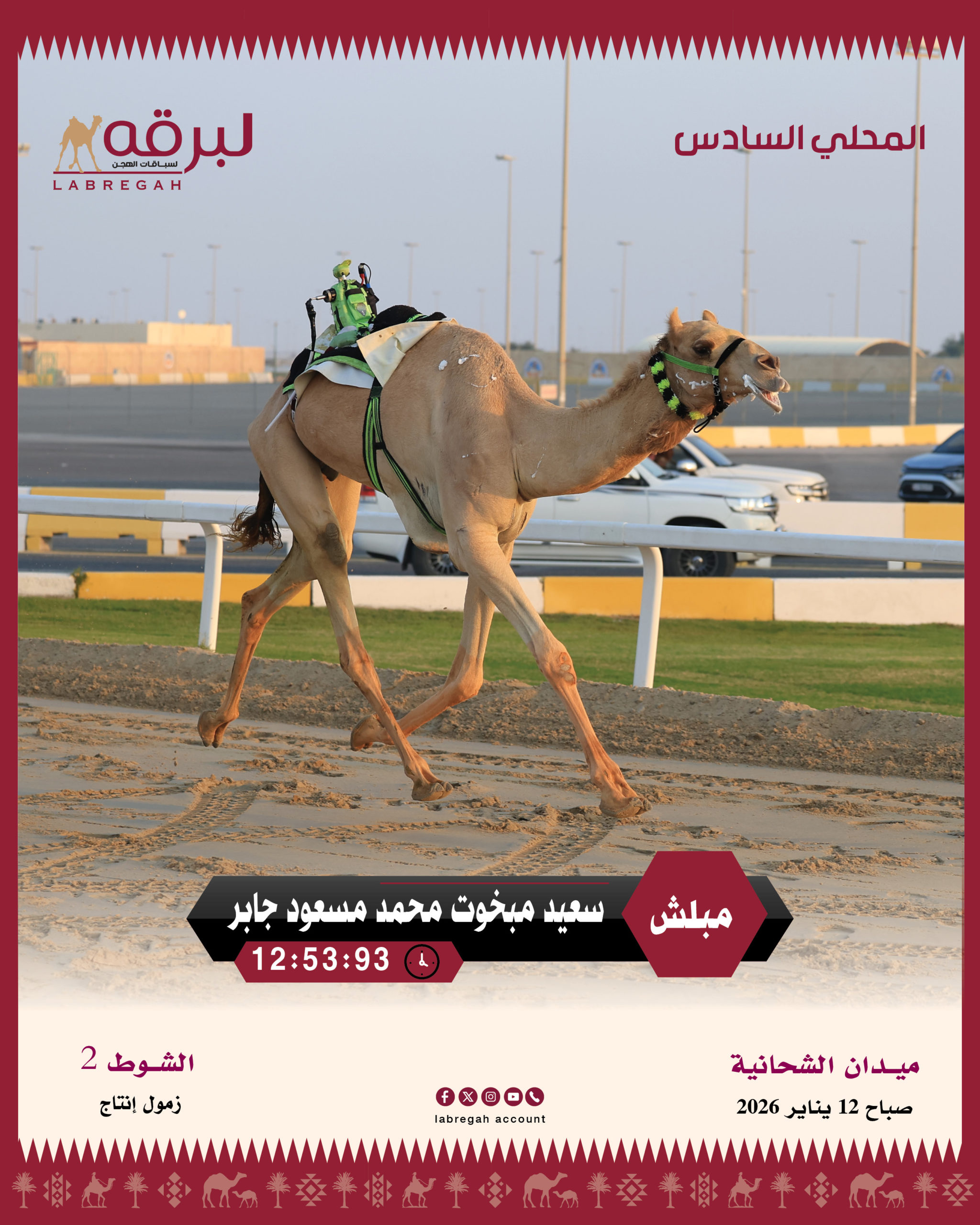 قلبت “الشايبة” ملك حمد فرج حمد ناصر دلموك، الموازين في الكيلومتر الأخير، بعدما أظهرت اندفاعًا قويًا حسمت به ناموس الشوط الرئيسي للحيل إنتاج، وذلك صباح اليوم الإثنين 12 يناير 2026، آخر أيام السباق المحلي السادس، وقطعت “الشايبة” مسافة الـ 8 كم بتوقيت قدره 12.40.23 دقيقة هو الأفضل، لتحتل “توله” ملك سعيد راشد عبدالله مبخوت قرح، المركز الثاني بتوقيت 12.43.44 دقيقة، فيما جاءت “الشاهينية” ملك مبارك سالم خجيم العذبه، على المركز الثالث بتوقيت 12.43.54 دقيقة.