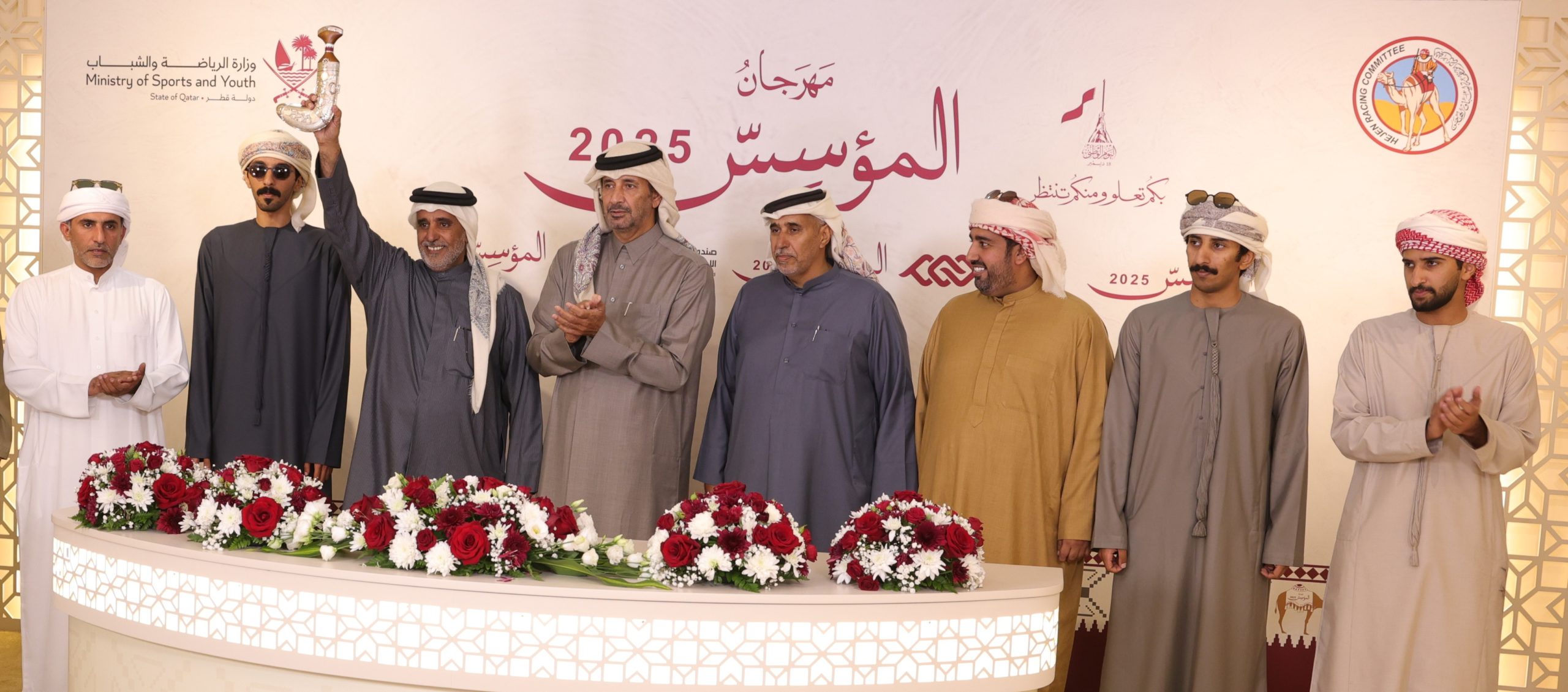 أول أشواط الرموز بالمهرجان السنوي للهجن العربية الأصيلة على سيف المؤسس الشيخ جاسم بن محمد بن ثاني “طيب الله ثراه”.