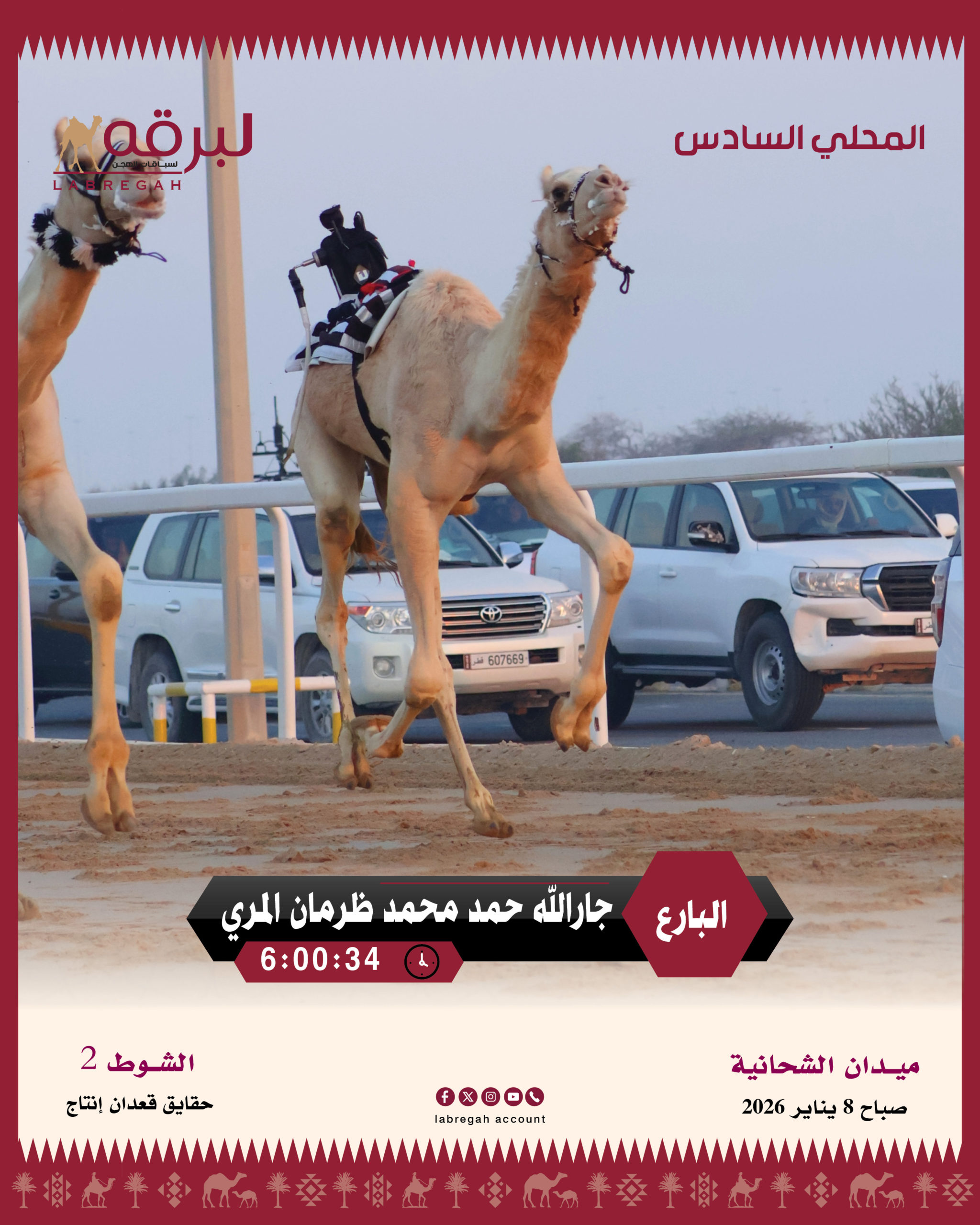 | الشوط الثاني | 1 | البارع | جارالله حمد محمد ظرمان المري | 6:00:34 |