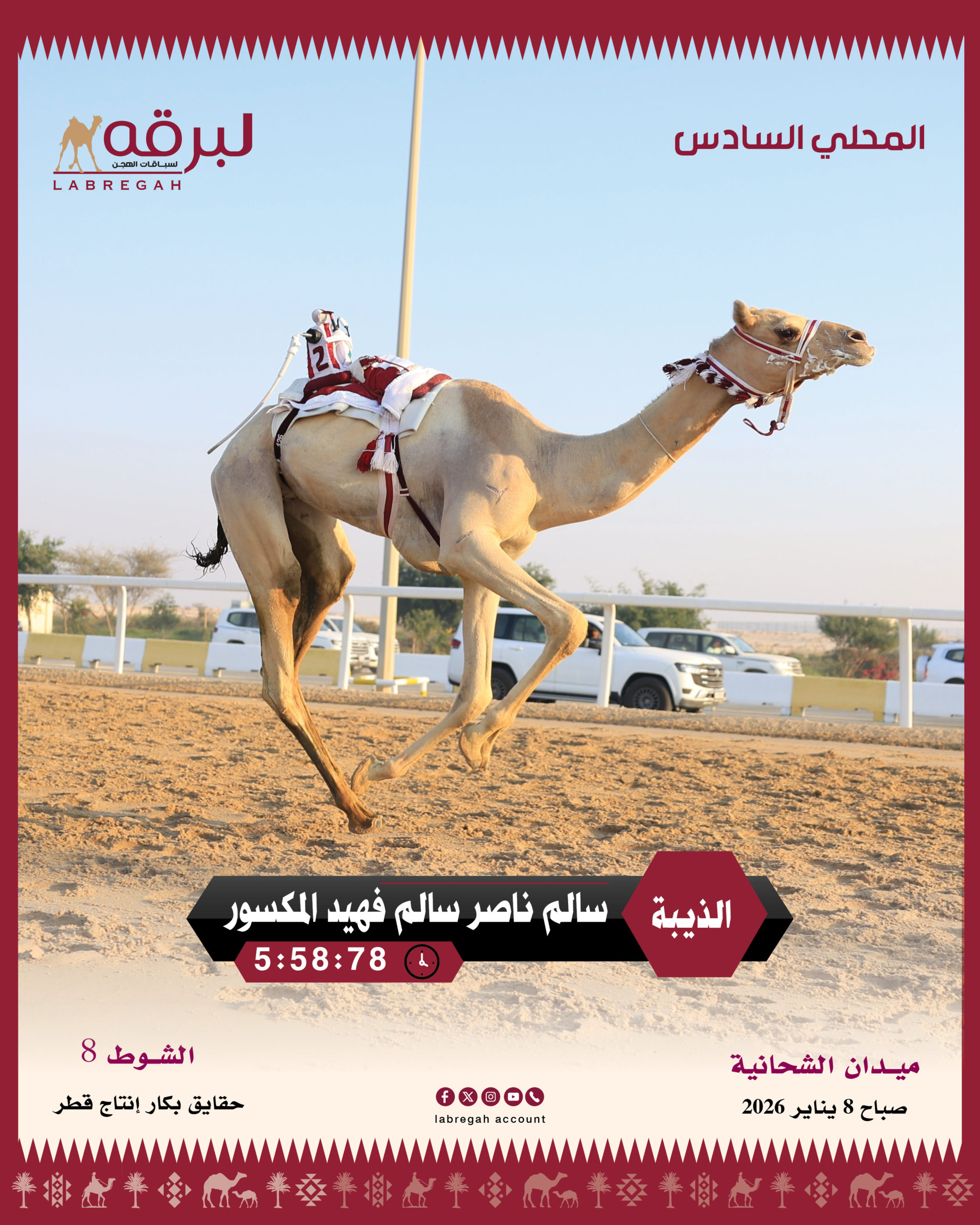 | الشوط الثامن | 1 | الذيبة | سالم ناصر سالم فهيد المكسور | 5:58:78 |
