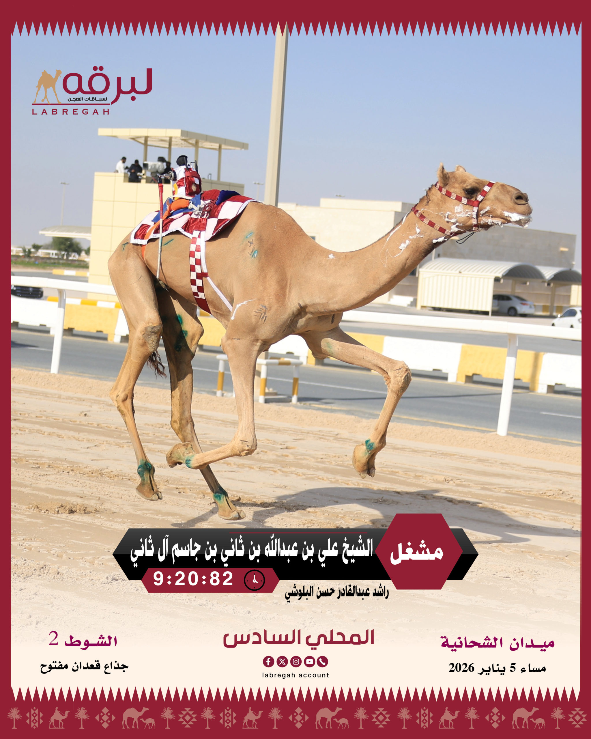 | قعدان مفتوح | 2 | شايش | هجن أم الزبار | محمد بخيت برقان المقارح | 9:26:53 |